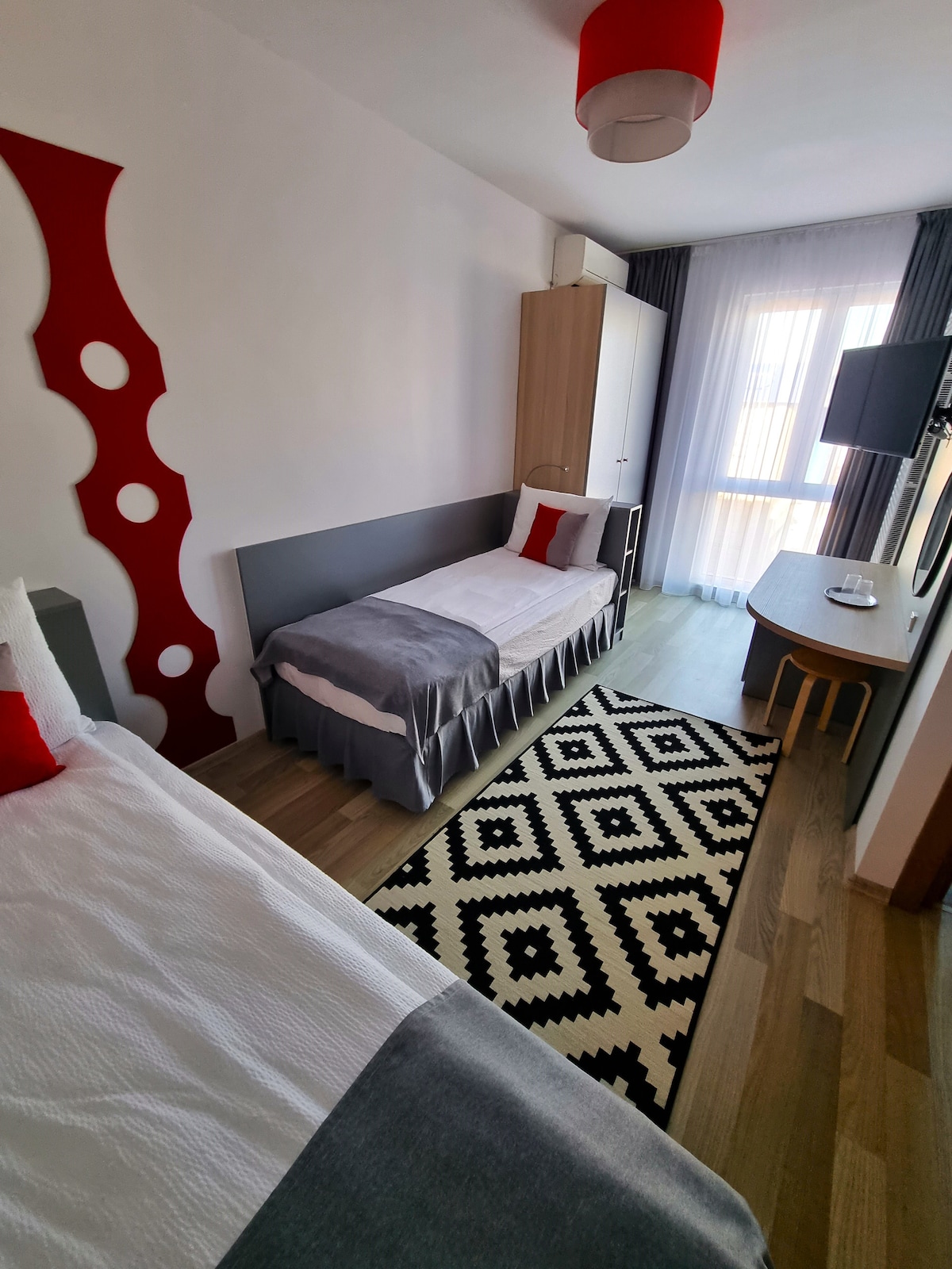 Room #1 – Sleeps 3 – Ideal for Work Crews or Groups Beds: 1 bunk bed and 1 single bed - Private bathroom - Fast access to E60, Industrial Area, Airport & Târgu Mureș - On-site restaurant - Quiet, practical and clean Entire location sleeps up to 12 guests (5 private rooms total) Discounts for longer stays and large groups available! This room is perfect for work crews, touring teams, or budget travelers who want a safe, accessible, and fully equipped base.