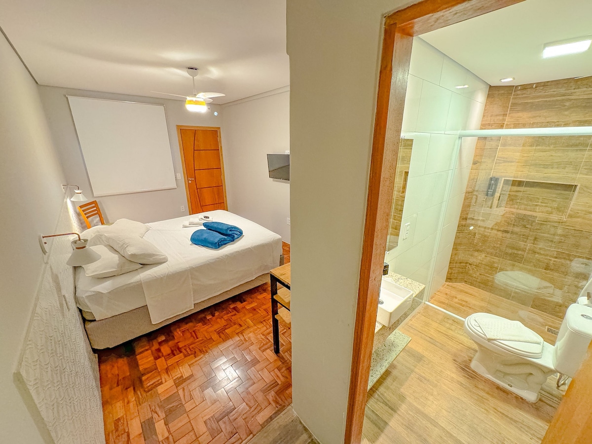 No centro de Serra Negra, Apartamento exclusivo. Apenas 1 quadra da rua principal. Próximo ao Correios e Santander. Com vaga de garagem, Wi-Fi e FRIGOBAR. O apartamento possui um quarto com cama de queen e um banheiro, para uso exclusivo dos hóspedes. Tudo recém reformado, ambiente limpo e arejado!