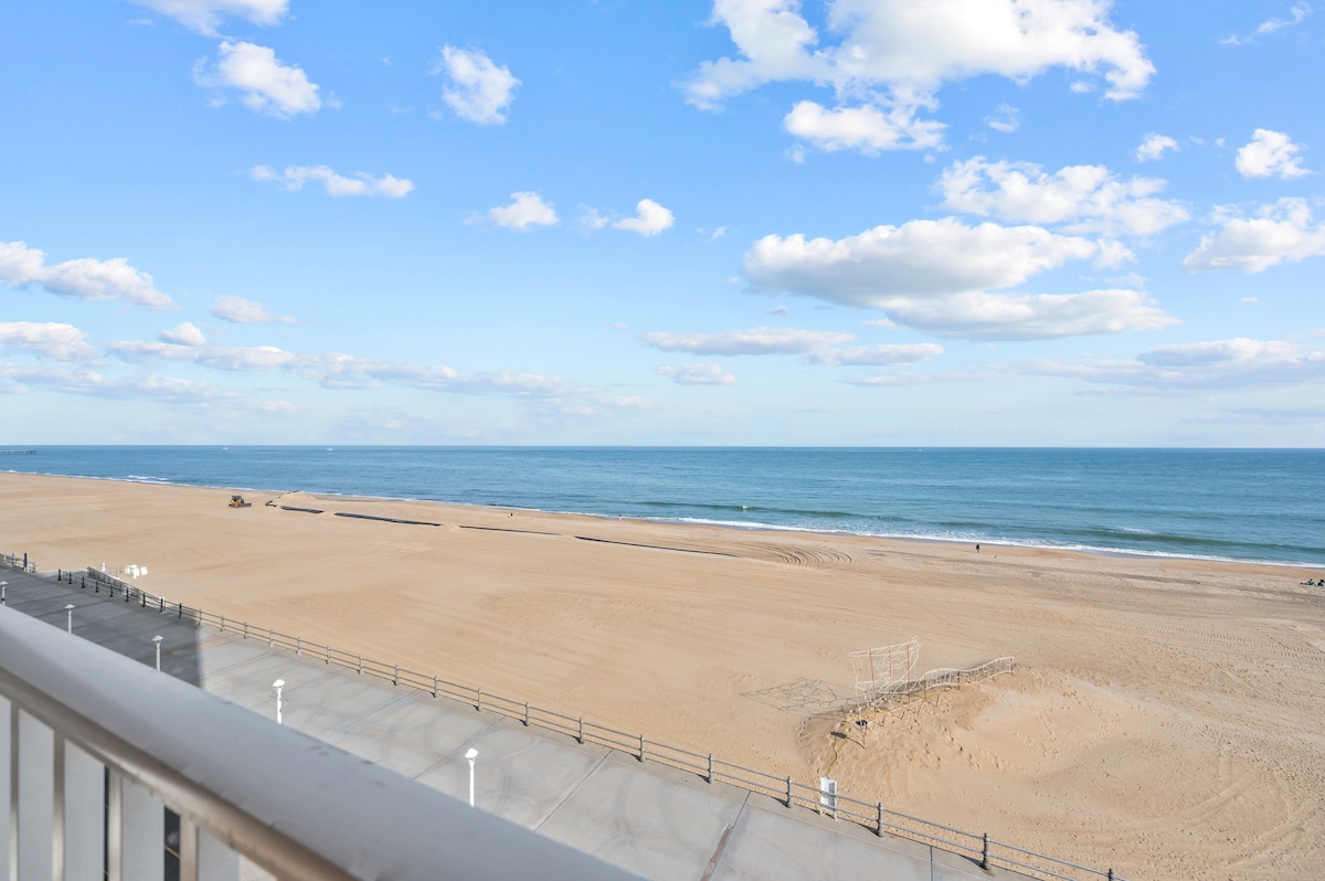 Located on the iconic Virginia Beach Boardwalk, this stylish 2-bedroom condo is the perfect coastal retreat for families, couples, or small groups. Enjoy breathtaking sunrises from the private balcony, sip your morning coffee to the sound of waves, and unwind as the sun sets over the Atlantic. Steps from the beach, shops, restaurants, and attractions, with a fully equipped kitchen for easy meals and drinks. Steps from the Beach Minutes to Boardwalk Dining & Shops