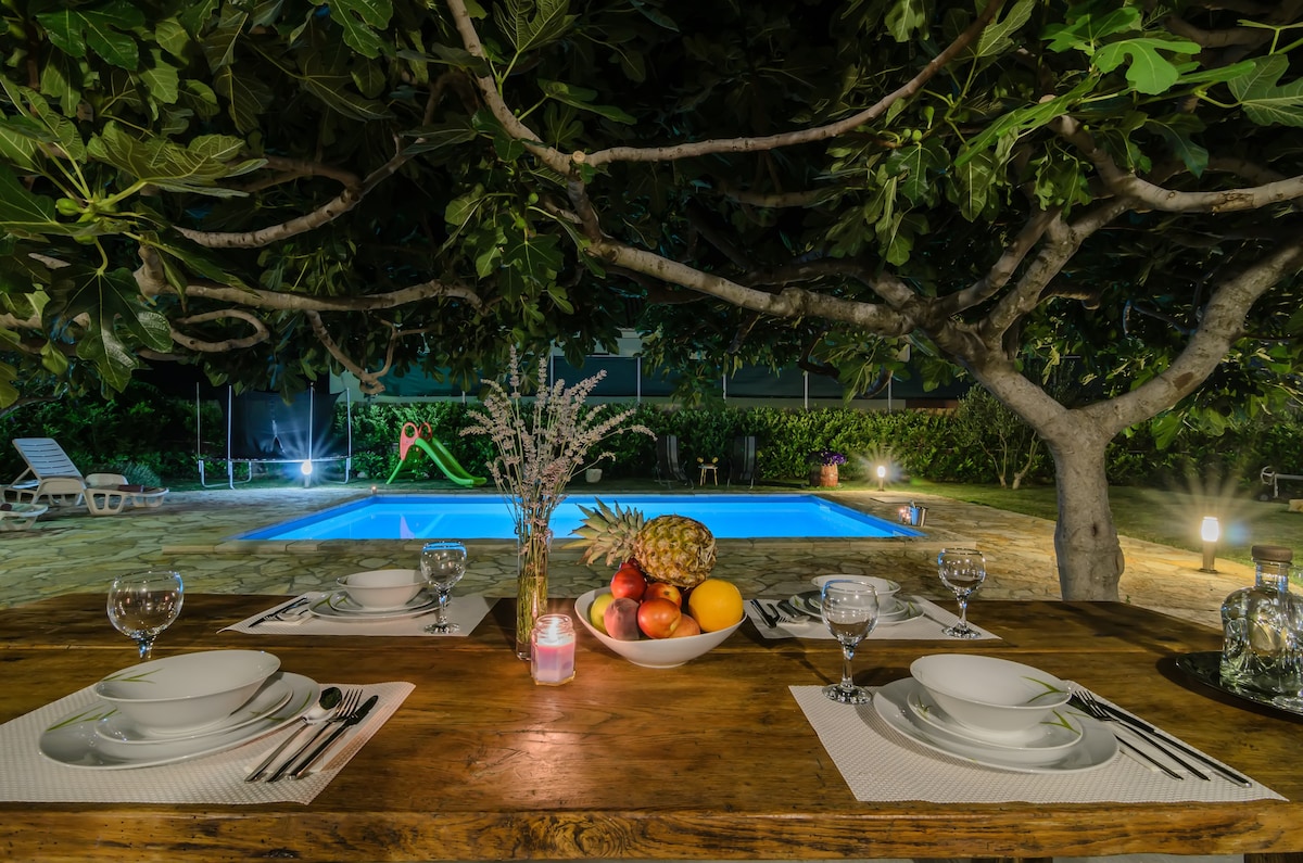 Villa is ideal for twVilo families with children, there are separate entrance for two large bedrooms,in each large room has one smal, two children's cot, two bathrooms with shower , kitchen with all appliances .. large garden with a swimming pool ( heated with solar cover),barbecue, table tennis and trampoline ,outside kitchen... It is located near the famous national parks Paklenica, river Krka, Kornati and Plitvice.... PLEASE when you do the reservations leave minimum 7 days between days