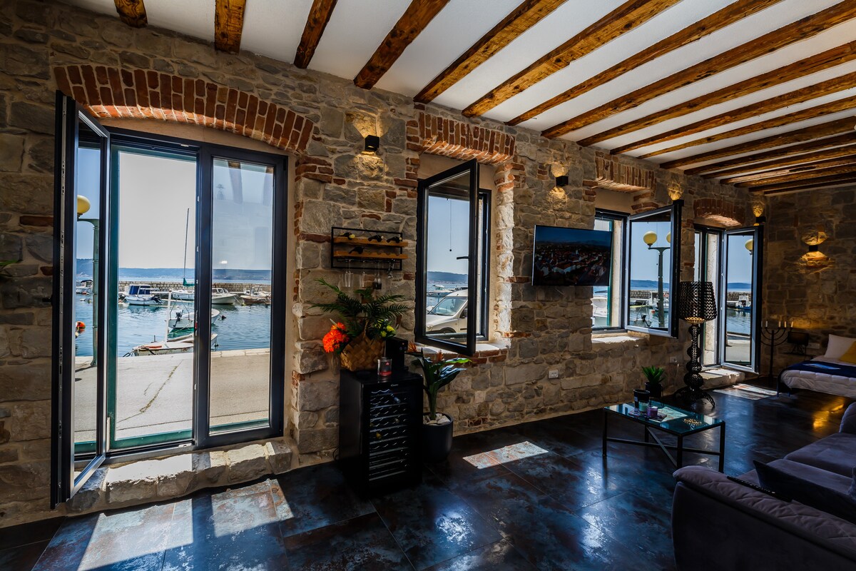 An Adriatic Pearl -absolute exquisite property. Breathtaking views directly on the sea - a perfect romantic getaway. Newly renovated 17th century stone house. A little castle with modern appliances, floating bed, chandelier, wine-fridge, high-speed WiFi, and TV with access to all international channels . This prime location is a stone’s throw from amazing beaches, restaurants, and the newly renovated Zinfandel Castle. Only a 10-minute drive from Split Airport. Experience 50 SHADES OF BLUE