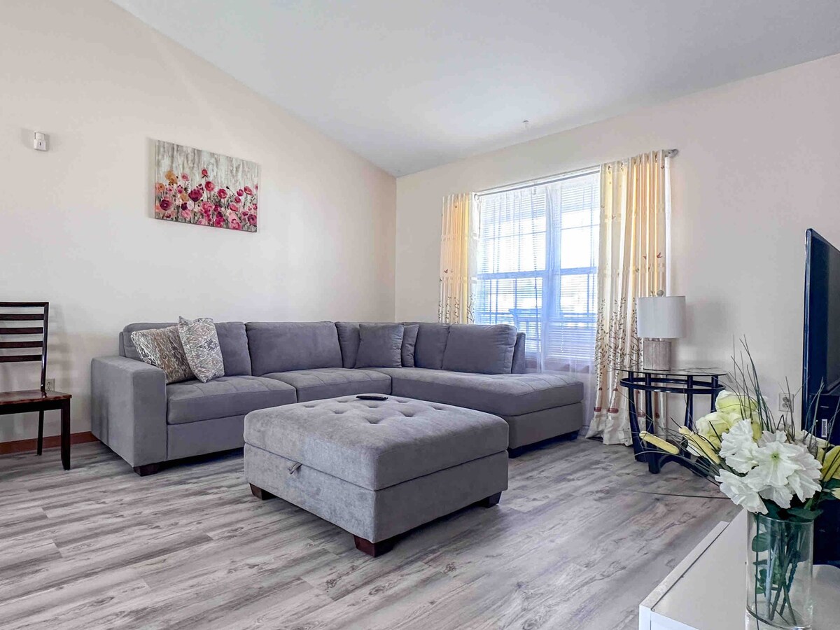 Relax with the whole family at this peaceful, brand-new home • 15 min to Cleveland Hopkins Airport, 17 min to the IX Center, 3 min to Victory Sports Park • Located on the border of North Ridgeville, North Olmsted, and Westlake • Fully furnished entire home with 3 bedrooms, a couch that coverts into a queen bed, and a crib • Fresh linens provided for every stay • Huge fenced backyard with covered patio • Private driveway and attached 2-car garage