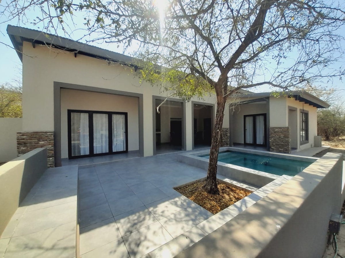 Solar and backup power installed 💥 NO LOADSHEDDING! This is a peaceful, Villa designed for relaxation. Not suitable for parties, loud music, or drinking groups. ❗️ Experience Africa in luxury with our spacious villa in the heart of Marloth Park. With 3 bedrooms, private pool, and wildlife right on your doorstep. The location of the villa is ideal for exploring the local area. The property is close to Kurger National Park, making it the perfect base for your African adventure. 🌵🏡🦓