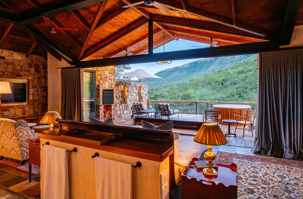 The Bakoni Hide-Away is an off-the-grid retreat, ideal for a romantic getaway for lovers of the African bush. Unfenced, it is set on a remote spot on the side of a mountain with abundant birdlife, buck and other game around. The design was inspired by the many stone circles that occur in this region and the Bakoni people who are believed to have roamed the area in the past. It is ideal for couples and 2 older children can be accommodated on the mezzanine floor if privacy is not a requirement.