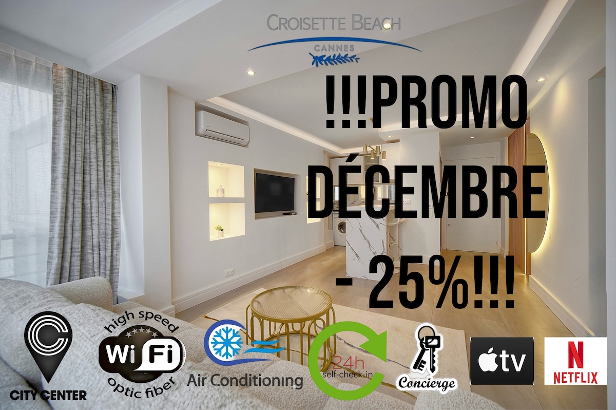 Situé à 350m de la Croisette et du Palais des festival cet appartement est un concentré de Luxe et de bien-être il a été conçu avec attention au moindre détail afin que les voyageurs se sentent dans un véritable cocon. Vous pourrez prendre le petit déjeuner sur le balcon en regardant la mer, vous détendre dans son canapé moelleux en écoutant de la musique grâce au système de son intégré dans le plafond ou encore vous délasser dans le lit King-size devant un film face à un un écran extra large...