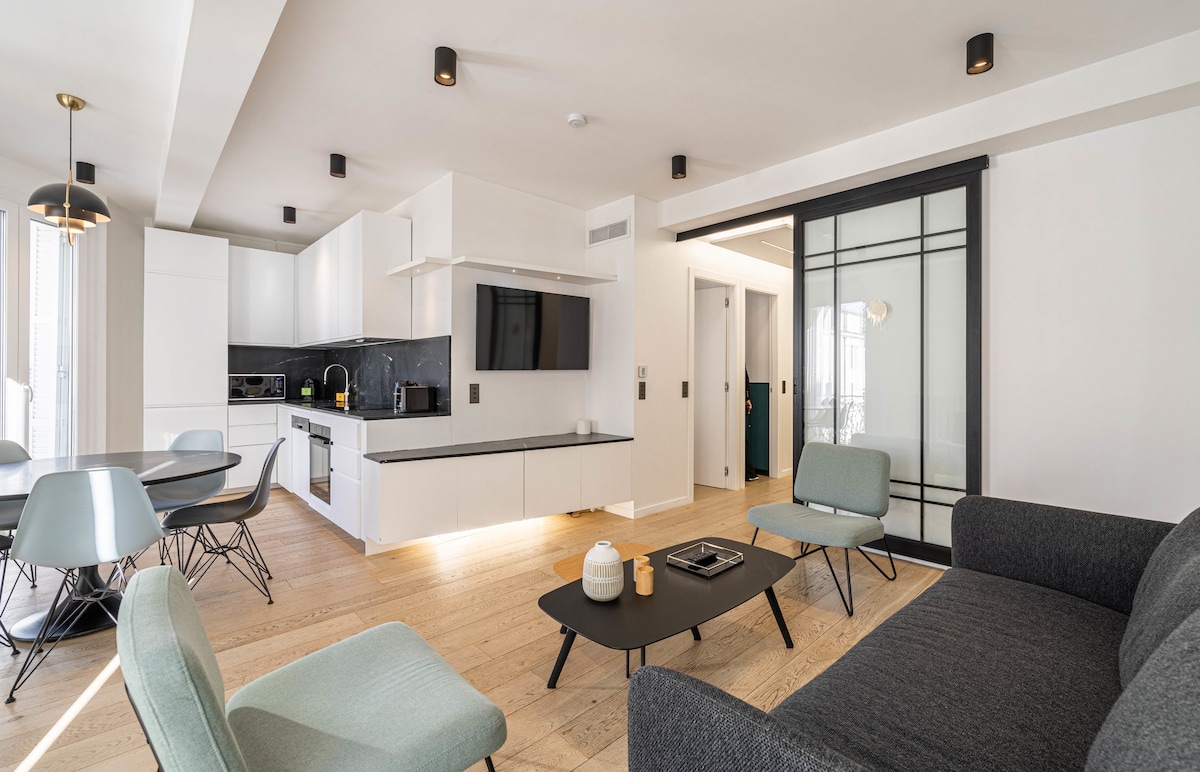 High quality 3 bedrooms / 3 bathroom or shower rooms apartment in the center of Cannes. By its ideal location rue des mimosas, you will be 1 min walk from the main shopping street, 3 min walk from the Croisette and beaches, and 9 min walk from the Palais des Festivals. Perfect location for vacation guests as well as conference goers. Recently renovated from A-Z, this connected apartment offers a neat and modern decoration, as well as high-end equipment.
