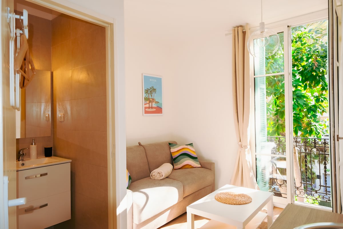 Venez vivre à la niçoise le temps de quelques nuits. Dans un havre de paix, au cœur d'un jardin de palmiers avec du mobilier pour apprécier le cadre. Ce tout petit studio est dans une jolie bâtisse niçoise. Parfait pour 1 personne Quartier animé, beaucoup de commerces A 2 min à pieds de l'arrêt de bus pour aller au centre touristique en 20 minutes. A 25 min de la plage en bus. Stationnement difficile, nous déconseillons les séjours avec voiture.