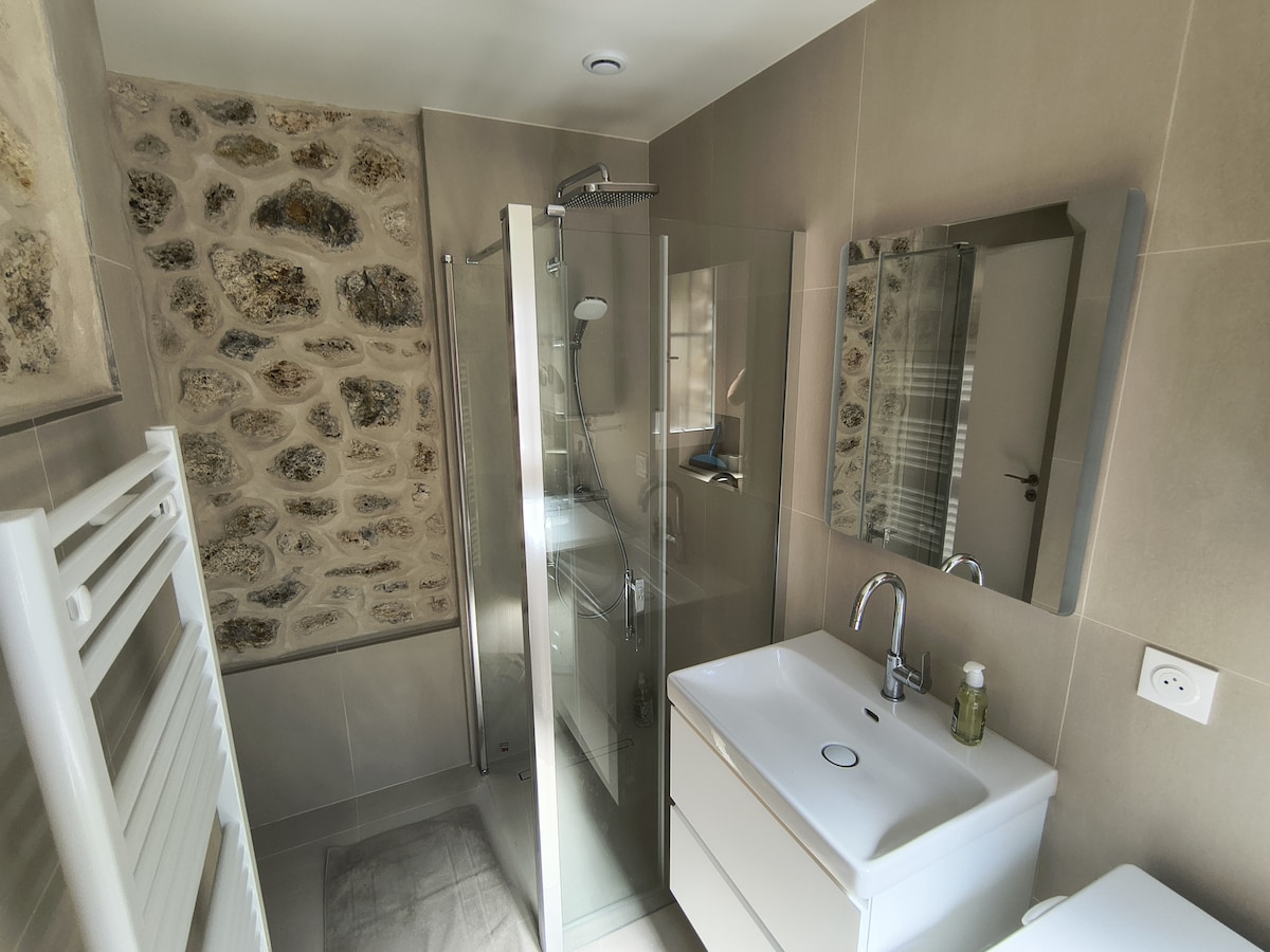 . This house of 2 bedrooms, 1 living room and kitchen, part of a property with a large garden and swimming pool (not accessible to guest in this period ) is located in one of the most eminently romantic and quiet havens of Paris’ surrounding: LE VESINET; Just refurbished this autumn, it is the theater of passing swans or other aquatic birds for whom the lakes and rivers nearby are a perfect refuge.
