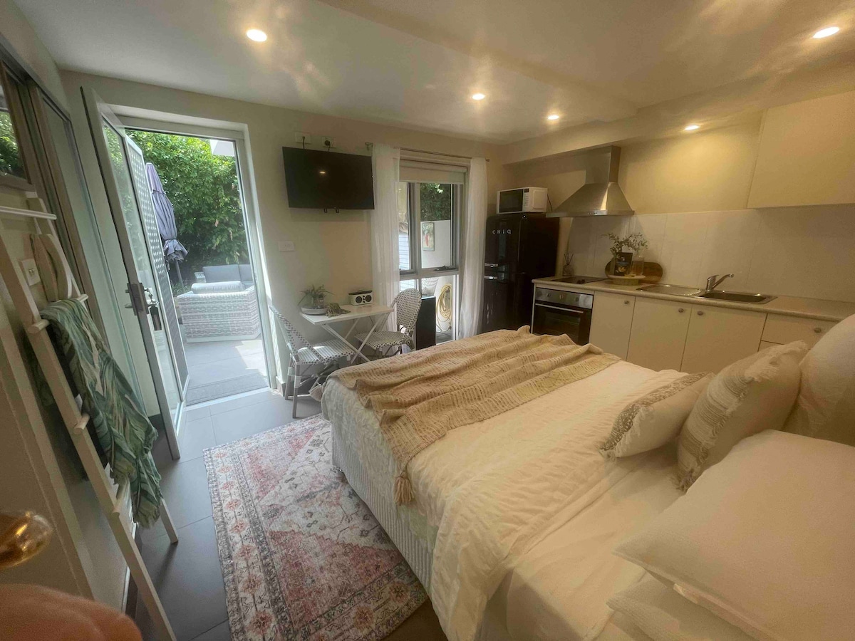 ***Best value, service and stay experience*** Fast internet. New covered patio. Centrally located, our guest house has a good size bedroom with a comfortable bed, a separate, fully equipped kitchen and a bathroom. The studio is a contemporary place with everything you need . Location is fantastic - take a walk anywhere: to mall, shops, beach or a train. Experience life as a local! Enjoy Netflix or just listen to birds. Stay longer and save even more! Plenty street parking ,safe!