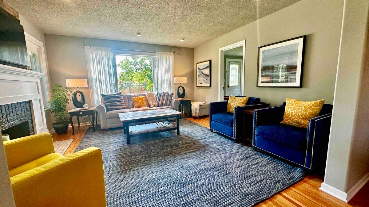 Roomier than a hotel suite! Upstairs of a 1.5 story home wich consists of 2 bedrooms, walk in closet, bathroom, and mini kitchenette, no sink. Coffee table with lift top to seat 4. There is a daybed with trundle as well as 2 queen beds. Most comfortable for 4 guests. Private entrance and front screen porch. Quiet neighborhood. Great location! 1 block from main street and short ride to bike trails. 3 blocks from Serpent Lake! Garage storage for bikes.
