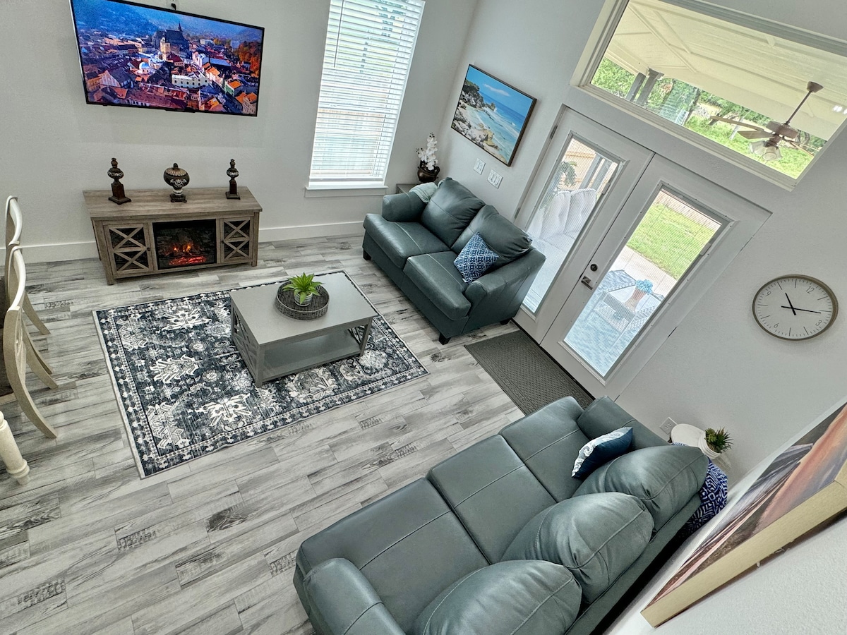 This recently built 2-bedroom, 2-bath San Antonio vacation rental is the perfect home base for a relaxing retreat with family or friends! This home features FREE Level-2 EV (CCS) charging, three Smart TVs & a fully equipped kitchen. Sip your coffee from the deck & enjoy the lake and plumeria garden views. Spend your time hiking local trails before heading out for shopping/sightseeing. Please note: This property is on the 2nd floor & requires stairs to access.