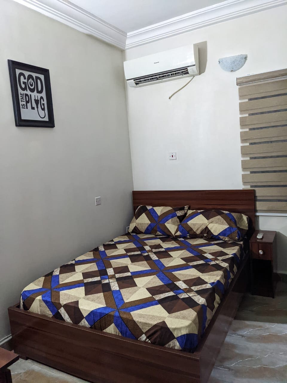 All en-suite spacious 3 bedrooms that is so perfect for your family and friends long-stay with CCTV coverage. Free Parking within the fenced and gated property for 4 vehicles and additional 4 cars parking opposite gate. Situated about 10 minutes drive away from the city center with various restaurants, bars and stores. This home is peaceful, calm and secured in a neighborhood with security guards at the property and within a gated estate. There is an inverter system providing 24 hrs power