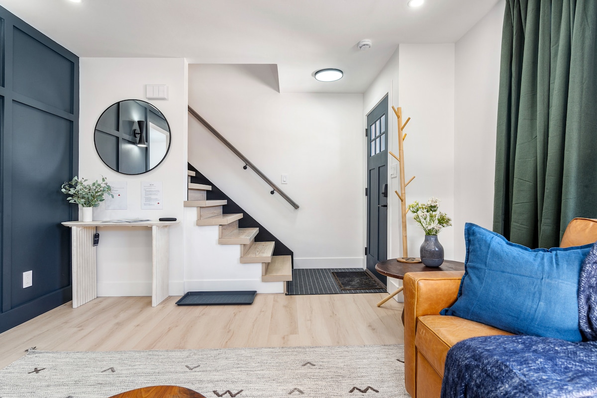 Welcome to your boutique retreat in the heart of downtown Troy! This cozy second-floor studio, designed by a local artist, is tucked away in a standalone Carriage House with a private entrance next to a whimsical mural by local artist Kayla Ek, and a lush New Orleans-inspired courtyard. Just steps from Troy’s best dining, art, nightlife, and wedding venues—and less than a block from the RPI approach—this gem is perfect for a romantic getaway, solo escape, or stylish stay while visiting the area.