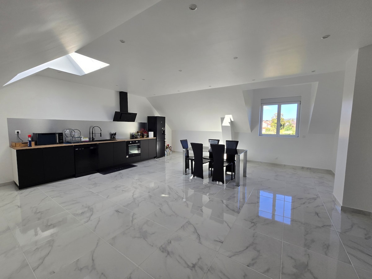 Gîte de 70 m², 2 grandes chambres. Linge fourni et lits fait. Cuisine équipée lave-vaisselle, cafetière Tassimo et filtre... Lave-linge séchant, jeux, matériel bébé. Tv et projo avec Netflix, Disney+, prime vidéo. 🌿 Jardinet, 2 terrasses, BBQ & parking privé devant le gîte au calme d’un hameau. 🎁 Panier & produits d’accueil offerts. 🐾 Animaux bienvenus + garde possible pendant vos visites ! 🍽️ Options : dîners, petit-déj, dîners, love box… 📍 À 5 min A4, entre Paris & Reims, 30 min Disney.