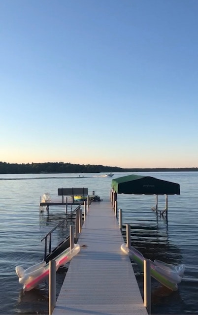 Our Chalet has 2 private bedrooms plus sleeping loft (Sleeps 10). WINTER: Enjoy winter sports skiing, snowmobiling, snowshoeing, hiking, biking, ice fishing, and all winter activities SUMMER: Beautiful large newer 20 foot Pontoon with 25 HP mercury outboard motor with tilt and trim, fishing boat, and 2 kayaks included at no additional charge! FALL: Enjoy the beautiful fall colors as the house is surrounded in lush forests. A peaceful retreat for friends and family to spend quality time together
