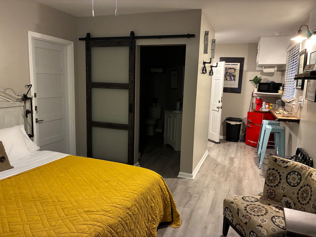 Aspen Street Cottage. Walking distance from Lincolnton; "near the city, near the mountains, near perfect". This charming guest house sleeps ideally 2 but can accommodate a maximum of 4. Space includes 1 bedroom with a queen bed, living area with a double size sofa bed, bath with tub/shower and a kitchenette with a mini-fridge, microwave, coffeemaker and dishes. The guest house also has a TV with cable and other streaming services available.