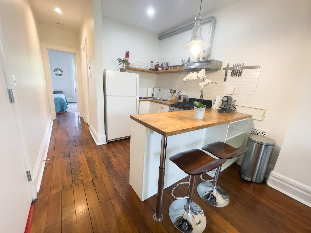 Welcome to this newly renovated, beautifully sunlit apartment, conveniently located 15 minutes from downtown Manhattan. This vibrant neighborhood has tons of bars and restaurants within easy walking distance. The host resides at the unit, but guests will have ultimate privacy and lots of space. - 1 min walk to subway - Private Entrance - Memory foam Queen beds - Fully equipped kitchen - Dedicated Workspace - 24/7 virtual support - Fast Wi-Fi - Smart TV - Record Player - Washer/Dryer