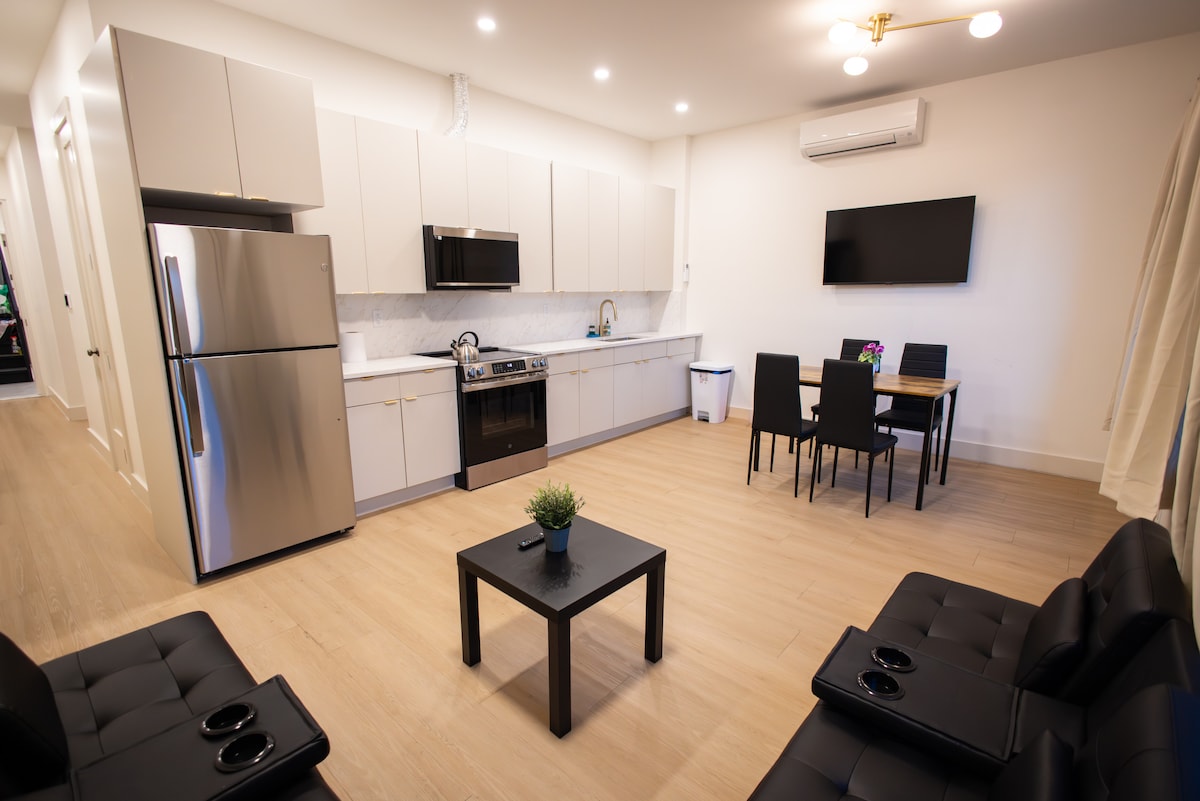 This newly renovated Queen Bedroom + Full Office/Bedroom is perfect for a quiet space to relax or work from home. The apartment includes a modern kitchen, dishwasher, laundry in unit, HVAC, high speed internet and gets great natural sunlight. Come experience modern sophistication with an old world charm. Access to the 2, 3, 4 and 5 trains. EV charging station and Citibike also nearby Short-term available. *Please indicate acurate number of guests. Family building.