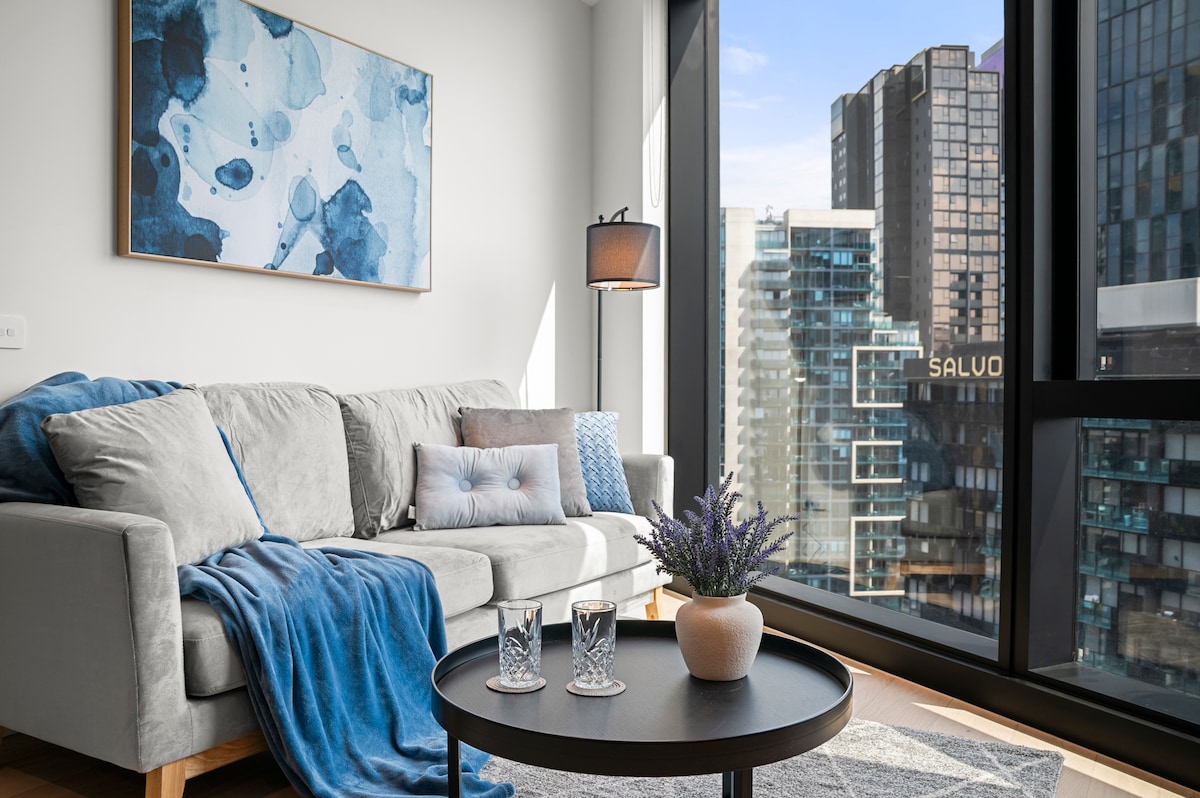 Live in the heart of Melbourne on Queensbridge Street, within one of the newest and most anticipated modern developments in the CBD. This stylish 1BR apartment offers fast Wi-Fi, a fully equipped kitchen, Smart TV, and access to premium amenities including a heated indoor pool, gym, and 24/7 concierge. Moments from Marvel Stadium, Docklands waterfront, Southern Cross Station, and close to Southbank and Crown Casino—ideal for business trips, events, or a premium city escape.