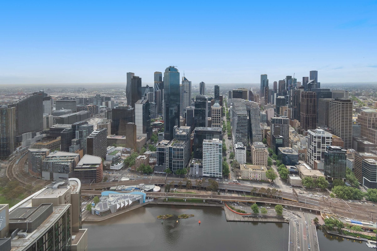 Situated on the very TOP floor, this apartment provides a sense of luxury and COMFORT, and is perfectly located in the heart of CBD with amazing views of Melbourne city skyline facing south, close to Melbourne's tourist attractions, shopping, cafes, restaurants, public transport. *On special events such as NYE, the apartment can view the fireworks celebration. Prime location City view under your eye ENJOY ENTIRE Apartment Free Tram Zone SONY LCD Smart TV Essentials and Wi-Fi included