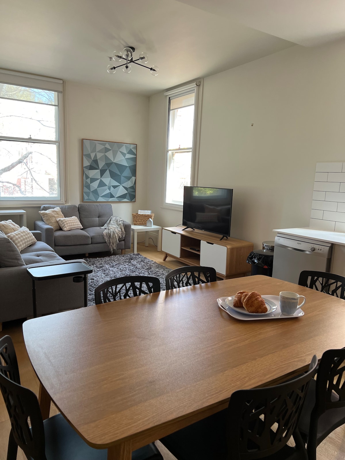 Escape to a stylishly renovated 2-bedroom heritage apartment in vibrant South Melbourne. This light-filled retreat comfortably fits 4 guests and is housed in a building from the 1860s. Features include a dedicated workspace, modern kitchen, and a prime location steps from the famous South Melbourne Market. Experience the perfect blend of historic charm and modern comfort for your city adventure.