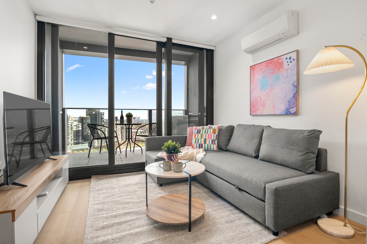 Indulge in the best of both worlds with a stylish central Melbourne vacation rental offering both adventure and relaxation. Savor the city's sights and sounds, then retreat to your cozy home-away-from-home. Featuring spacious timber floors, a lavish king-sized bed, two comfy king-singles, and a stunning balcony with breath-taking views of the city. Stay connected with friends & family via high-speed internet and streaming services, then pamper yourself at the makeup station or use it for work.