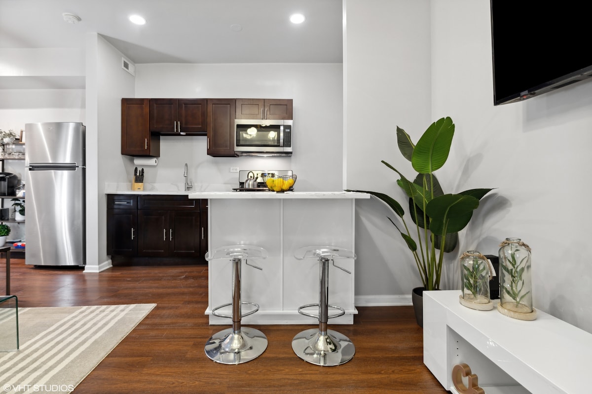 Clean & modern Avondale apt close to Blue Line, perfect for urban explorers! Stylish decor, comfy bed, and a cozy ambiance await. Explore nearby cafes, bars, and boutiques, or hop on the train for downtown adventures. Easy to access & great neighborhood. Easy permit parking (free passes provided) on street allows for the ability to drive or take public transportation wherever you want to explore. Avondale has been voted one of the best neighborhoods in Chicago! Come see what the fuss is about.