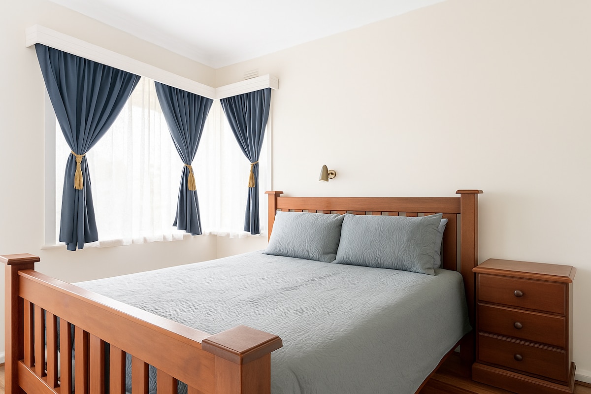 This is a single room, retro-themed studio with 3 beds, a double, king single and a single trundle bed. Split system air conditioning / heating ensures comfort during your stay. The kitchen has a fridge with a small freezer, a double hot plate (suitable for reheating meals), microwave, as well as assorted pots and pans. There is a small, private bathroom with shower and toilet, a front loader washing machine. The TV provided has free to air, an Apple TV box and fast free WIFI is available.