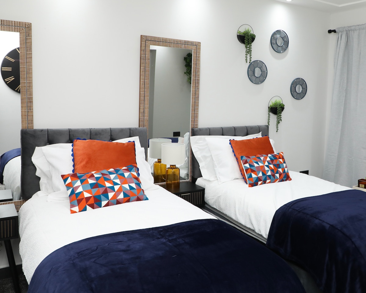 Welcome to our stylish Manchester apartment! Perfect for couples or friends, our well-appointed space features two comfortable twin beds, ensuring a restful night's sleep. The living area is designed for relaxation, to unwind after a day of exploring the city. The fully equipped kitchen invites you to showcase your culinary skills, or venture out to sample the local dining options nearby. Experience the best of Manchester from our welcoming apartment where comfort and convenience converge.