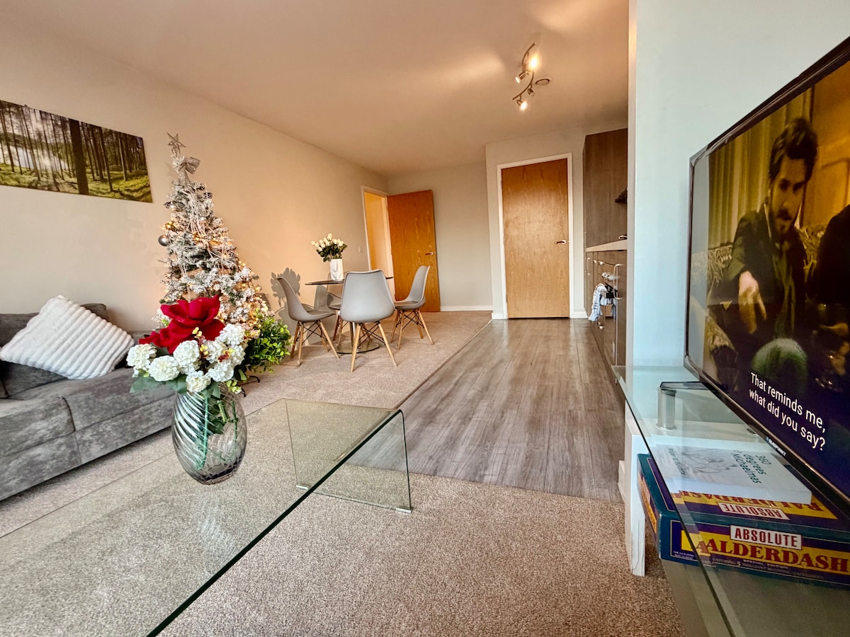 靠近市中心的时尚1卧室公寓,Salford,+健身房