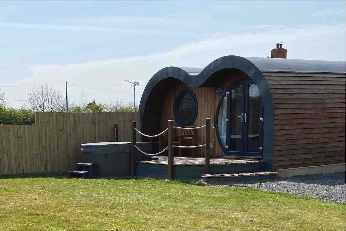 The Sheep POD is set its own 3 acre field with views of the Preseli Hills and sheep for neighbours. 1.5 miles from the popular boutique town of Narberth, a short drive to the Preseli Hills and the wonderful Pembrokeshire beaches. We take one night bookings on request, don't hesitate to ask. Bookings are for Airbnb guests only, for insurance purposes no extra visitors or guests please. We now have a sail cloth to half cover the hot tub, when needed, on rainy evenings or hot sunny days.