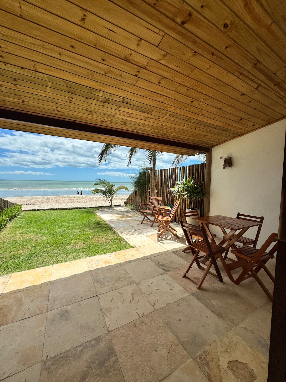 Casa Cantinho no Mar is a beautiful, spacious beachfront home with spectacular rooftop terrace - perfect for toasting the sunset every evening! 2 bedrooms (1 with varanda) with air conditioning and en-suite bathrooms + large desk/workspace, fully-equipped kitchen, social bathroom, dining room, Smart TV, WiFi, patio and deck. Space to wash/dry/keep kiting equipment. *Second bedroom can be 2x single beds or 1x comfortable Queen. Housekeeping daily. Easy walk to town, markets and restaurants.
