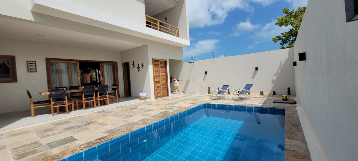 Casa moderna e aconchegante, bem equipada com tudo aquilo que você precisa. Piscina, churrasqueira, smart tv com Apple tv, Disney + e Prime video. Garagem interna para 2 carros. Excelente Localização : 600 m da praia (altura do Cabaré do Vento) 200 m da avenida principal, com comercio em geral, restaurantes, supermercados, farmácia. 500 metros para o rancho do peixe.
