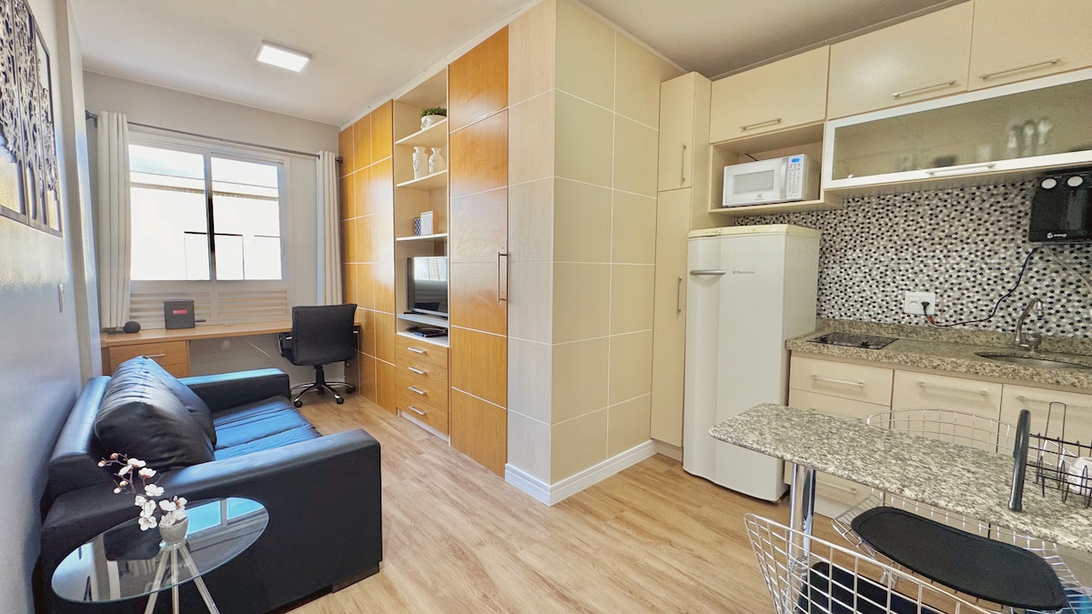 TV 40 polegadas, WIFI, tv a cabo, ar condicionado, cama de casal, sofá, cozinha completa com cooktop, frigobar, microondas, torradeira, sanduicheira, cafeteira, além de ferro de passar e secador de cabelo. Localizada na melhor area de brasília, com supermercado, restaurantes, bares, padaria, lavanderia, banco, salão de beleza, academia a um raio de 1 km de distancia, alem do parque da cidade a 2 km, estádio nacional a 5 km, esplanada dos ministérios a 8km e aeroporto internacional a 13 km.