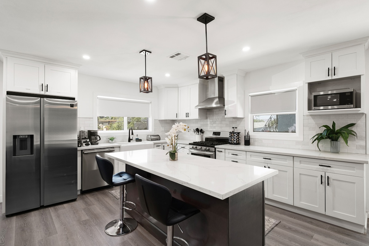 This home truly provides the quintessential California vibe you've been searching for! An updated traditional single-family home, the exterior aesthetic is contemporary, while the interior features a cozy yet modern decor. The backyard is a DREAM, it includes a large multi-level patio with fire-pit, perfect for quiet enjoyment with your group. Enjoy the breath-taking hilltop views and picturesque sunsets. Come create your memories in this sunny LA home! *Please see house rules before booking*
