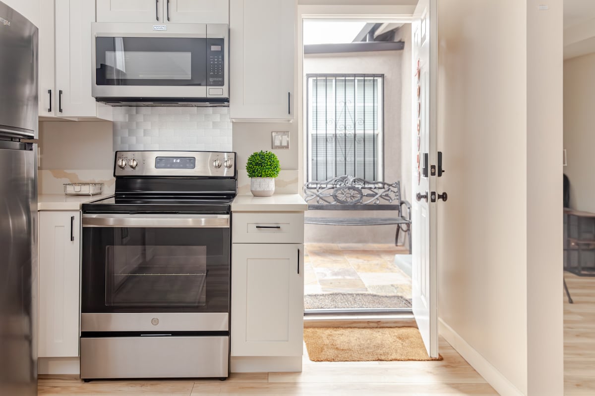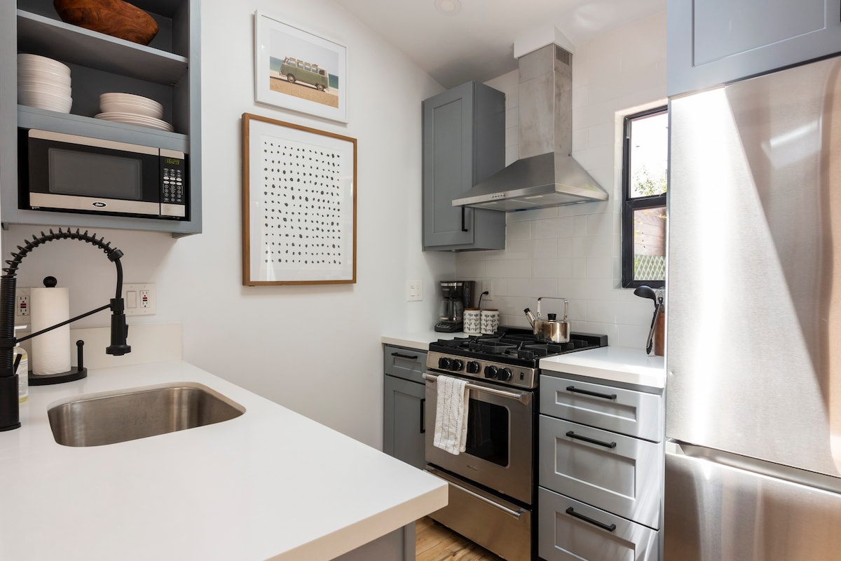 This newly renovated 500 sq. ft. modern Farmhouse Cottage, located in a safe, walkable neighborhood is the ideal getaway for two adults. Featuring a full kitchen and ensuite bathroom, this light, bright space has quartz countertops, wood floors, marble tiled bathroom, brand-new appliances and furnishings. Perfect for the visiting remote worker or traveler, we’re located just one mile from the heart of fashionable Culver City, 6 miles from Santa Monica, and 15 minutes from LAX.