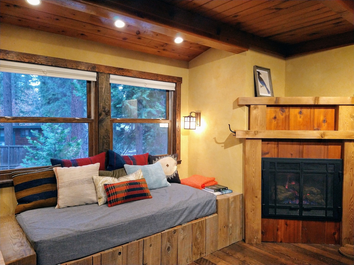 Epic Location! Perfectly appointed, modern/classic, intimate nest for a beautiful getaway. For all you romantics and individuals who need a replenishing, fun, nourishing retreat, surrounded by spectacular beauty, endless opportunities to play, eat and shop. Classic 1930's Lake Tahoe Cozy Cabin, with well appointed 21st Century comforts, in a historically famous neighborhood. Close to all the magical activities to do in Tahoe. Hot tub, Gas Fire pit, Deck, EZ stroll to Lake! 4 Season Wonderland!