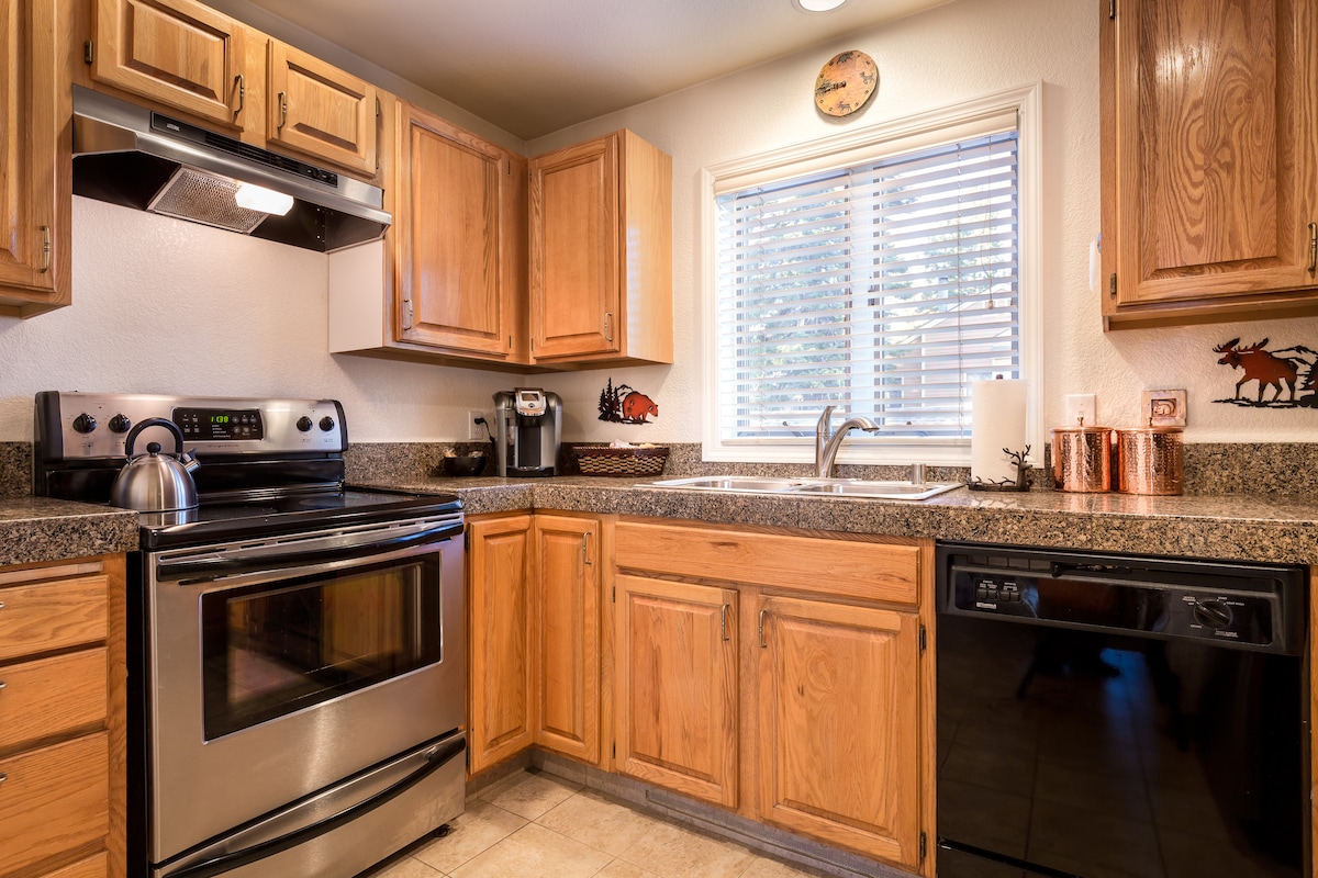 Escape to our Craftsman cabin—where mountain charm meets modern comfort. Just six blocks from the lake, perfect for up to 4 guests: cozy up by the gas fireplace, cook in the fully equipped kitchen, and unwind in the clawfoot tub or infrared sauna. Two dedicated desks make remote work easy. Step out the back to wooded trails with a creek and lake views; walk to the beach and local restaurants, and reach top ski resorts ~15 minutes away. The ideal base for a restful, memorable stay.