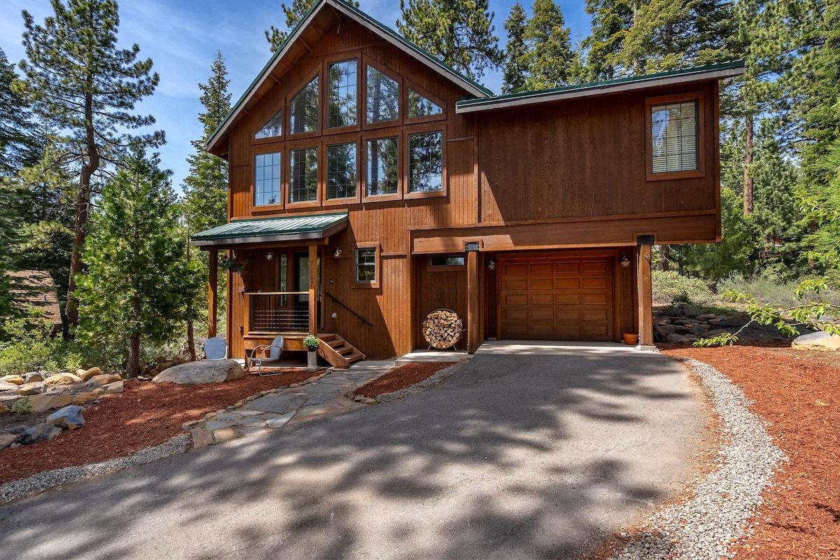 Welcome to our mountain escape. Timber Creek is perfect for your Tahoe retreat.Remodeled and with beautiful furnishings through out. Only a short walk to the pristine waters of the Jewel of the Sierra. Enjoy star gazing in the new private Hot Springs Vanguard 42 jet hot tub in the patio , after a day of adventure, or in the summer lay back in the hammock and enjoy the sounds of the forest around you . We welcome Rover & have a fenced yard . The kitchen is perfect for the chefs in your group.
