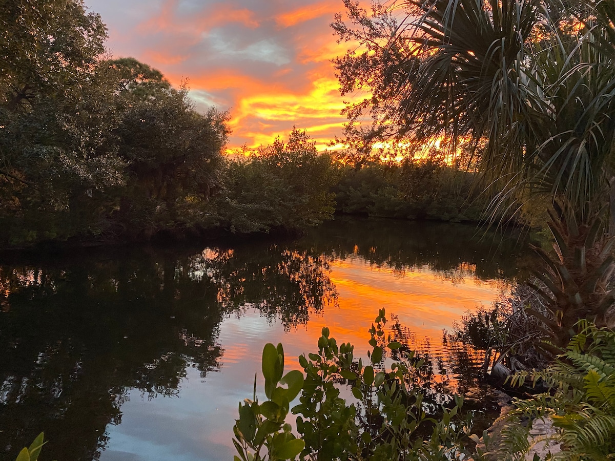 Charming private suite in a safe, serene neighborhood—just minutes from beaches, Downtown Tarpon, Sponge Docks & Sunset Beach! Your cozy retreat features a private entrance, queen bed, fast WiFi, cable television, a full kitchen & heated in-ground pool. Explore Tarpon Springs and the Pinellas Trail on provided bikes, then unwind at Sunset Beach with provided beach towels, chairs, umbrellas, toys, cooler & sunscreen. This space is a perfect blend of comfort, convenience & coastal charm!