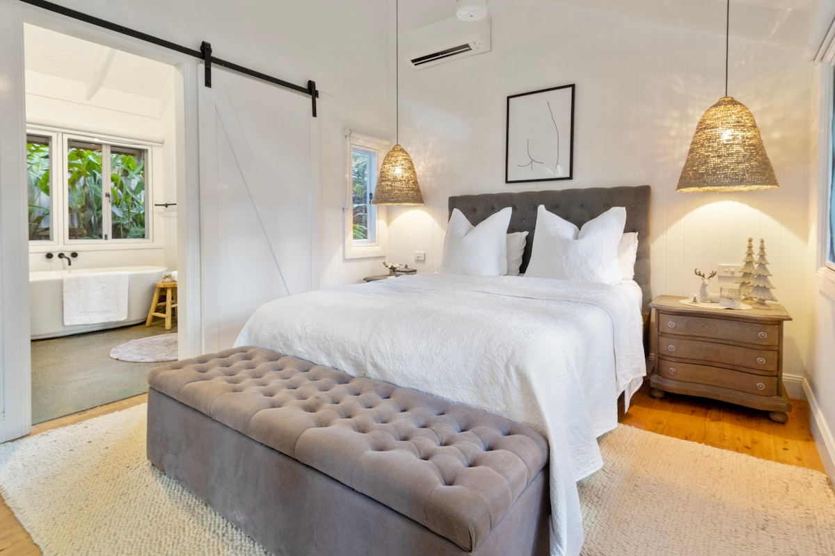 Welcome to White at Home Cottage. The cottage has been designed with comfort in mind and has a relaxed easy going vibe. Perfect for a Girly weekend, Couple's stay, or family get together. We aim to make you feel "Right at Home" So Indulge in the outdoor bath, fluffy white towels, bath salts and robes provided. Relax on the verandah with your morning coffee and enjoy the garden views. A five min drive Into town makes it super easy to enjoy all that Mullumbimby has to offer.