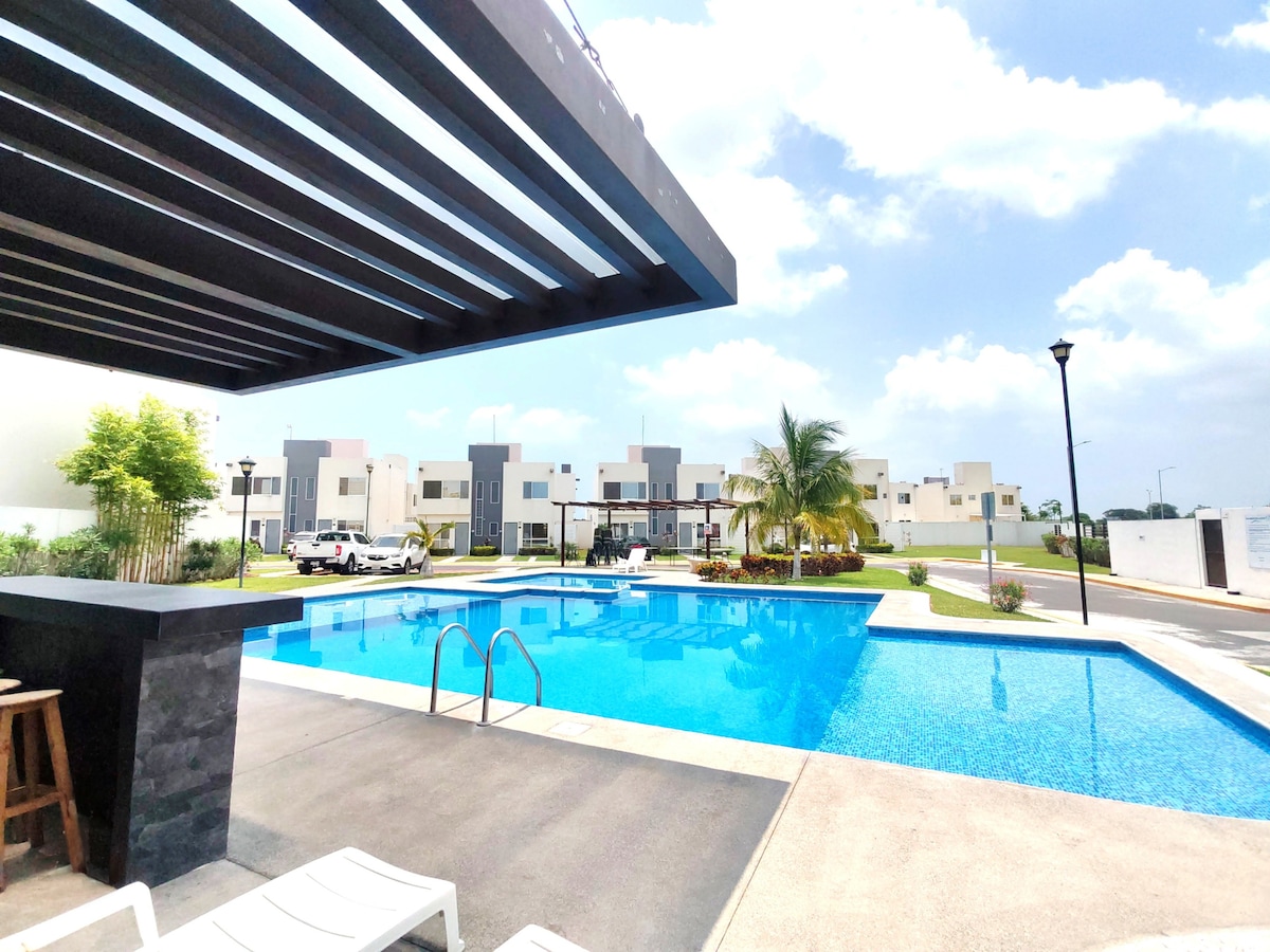Full house with 3 bedrooms in a private cluster with security. * All bedrooms and main room with Air conditioning * Internet speed at 100 Mb * Shared pool * TV in the main room * Two-car size garage * Full kitchen * 2.5 Bathrooms * Access to Lagoon at just 3 min walk - 200 yards * Convenience store at just 7 min walk - 600 yards