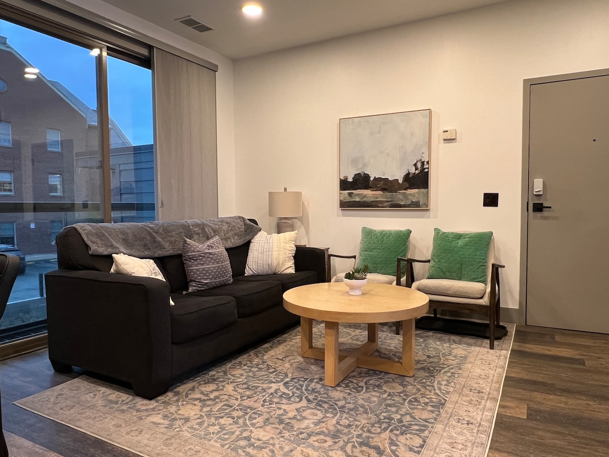 🏡 Modern & Cozy Studio – Downtown Traverse City ✨ 🔹 1BR | 1BA | Sleeps 4 – King Bed + Queen Sleeper Sofa 🏛 Historic Charm – Fully Renovated in a Former Auto Service Center 🚗 📍 Prime Location – Steps from Beaches, Restaurants & Bars 🍽️🏖 🍳 Fully Equipped Kitchen – Perfect for Short & Long Stays 🛋 Comfort & Convenience – Washer/Dryer, Large Closets, A/C 🅿 Parking – Free street (except winter), metered & limited on-site spaces