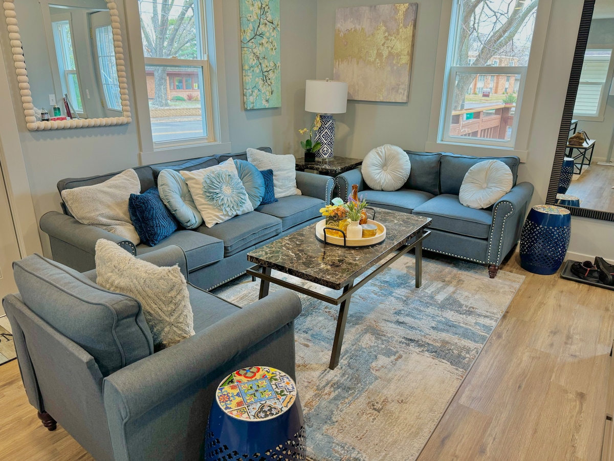 Welcome to your cozy retreat in Northeast Minneapolis! This charming two-bedroom home captures the essence of the neighborhood with its unique decor and warm atmosphere. The living area is inviting, perfect for relaxing after a day of exploring. The fully equipped kitchen makes meal prep a breeze, while the dining space offers fun & functionality. Step outside to unwind in the private hot tub under the stars, surrounded by the local charm—ideal for a romantic getaway or small family retreat!