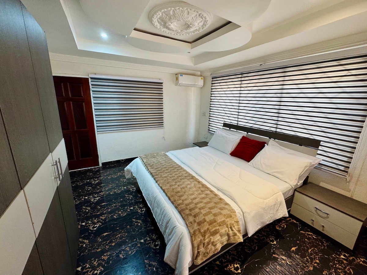 Enjoy this stylish one-bedroom suite in East Legon, just minutes from the airport, A&C Mall, and Accra Mall. Surrounded by restaurants and shopping, it offers a rooftop terrace with stunning views, outdoor dining on ground and rooftop levels, a swimming pool, reliable Wi-Fi, 24/7 power, and security. Thoughtfully designed for your comfort, it’s the perfect blend of convenience, luxury, and relaxation at the heart of Accra.