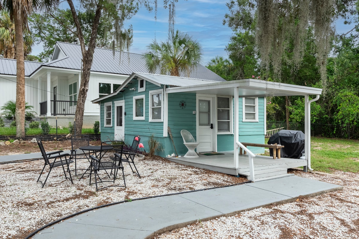 Books fast! Manatee season! Tiny home on a rescue farm minutes to manatees, springs, rivers, and beaches! A refuge for fainting goats, ducks, chickens, baby piglets, an OUTDOOR hot/cold shower, and a COMPOST toilet. Adventures, fishing, while manatees, dolphins, and other wildlife can be spotted near year-round. Sit by a fire and relax in Adirondack chairs, hammock or at a picnic table. Bring water toys, kayaks, ATVs, RV/trailer, boats, and FUR BABIES for the ultimate GLAMPING getaway! Read all!