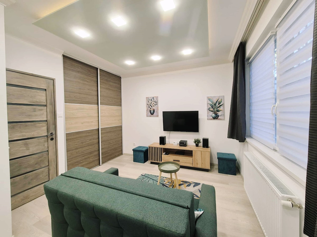 A 2024-ben átadott Apartman a belvároshoz közel kínál igényes szállást, amely tömegközlekedésel ~5 perc, sétával ~10 perc alatt érhető el. Az épület első emeletén lifttel közelíthető meg és fedett erkéllyel rendelkezik. Ingyenes, fedett parkolási lehetőség a zárt udvarban. Mindkét helység klimatizált és egy 108 cm-es, és egy 140 cm-es LED tv-vel, ingyenes kábeltv adással, és wifi-vel ellátott. Teljes értékű amerikai konyha mosogatógéppel, kávé és tea bekészítéssel szolgálja a lakókat.