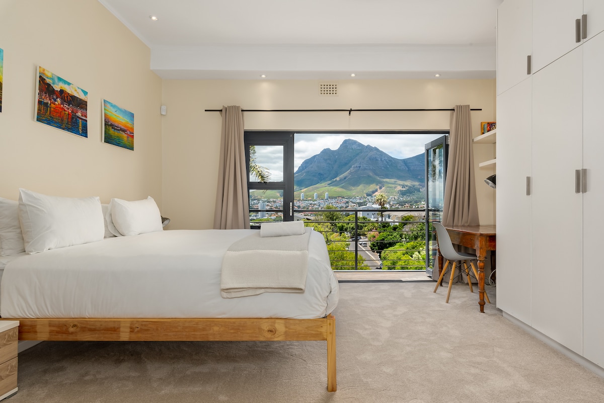 Welcome to our modern oasis at the foot of Table Mountain in Vredehoek, Cape Town. This stylish and comfortable 2-bedroom(en-suit bath) house is the perfect home away from home for your Cape Town adventure. Shops and restaurants within walking distance. Close to the city center within 5min and all beaches with 15min reachable. Solar energy and backup power available - NO LOADSHEDDING. Access onto Table Mountain via a gate in the garden, views all over CPT from the front balcony & terrace.