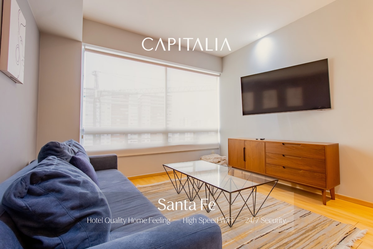 Modern and renovated 'Pet-friendly' apartment located within a residential complex with luxurious amenities and a staff that will ensure your stay at Capitalia is safe, comfortable, and unforgettable. Our amenities have been updated for the convenience of our guests. Enjoy our gym, reading area, meeting rooms, co-working space, event hall, snack machine, parking, playroom, terrace with grill, and garden with a children's play area.