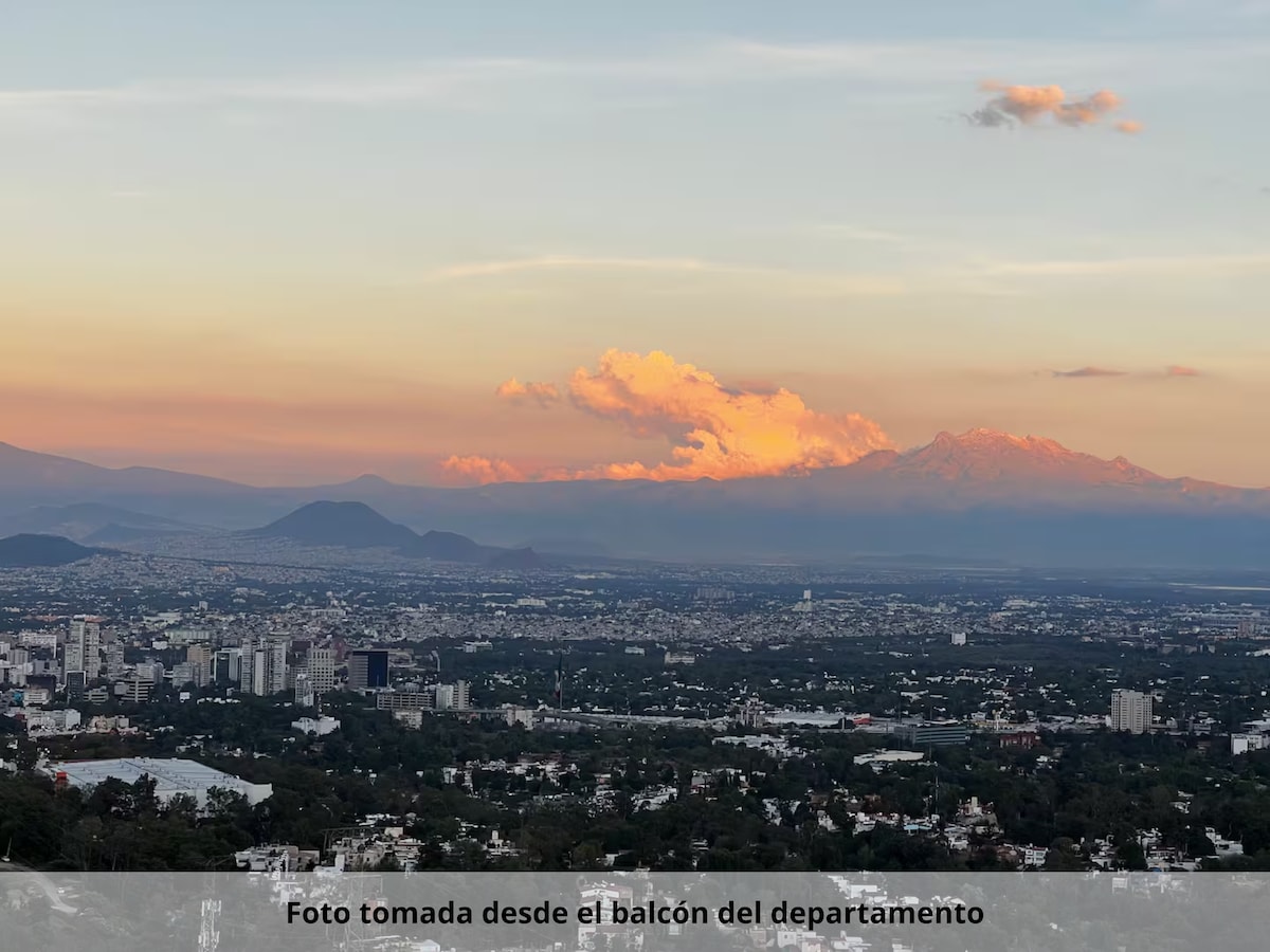 Departamento completo cama KING, baño y Wifi inalambrico. Hermosa vista hacia Santa Fe, comedor, cocina, microondas, refrigerador, lavadora, plancha. Estacionamiento techado con elevadores directos. Seguridad y vigilancia 24 horas, gimnasio Aquí te sentirás como en casa, un lugar muy acogedor con todo lo que necesitas para tu estadía. Mini super en PB, 2 restaurantes internacional y Mexicano. Junto a Santa Fe, muy cerca de Interlimas, centros comerciales, Ibero, Tec, Varias vías de acceso.